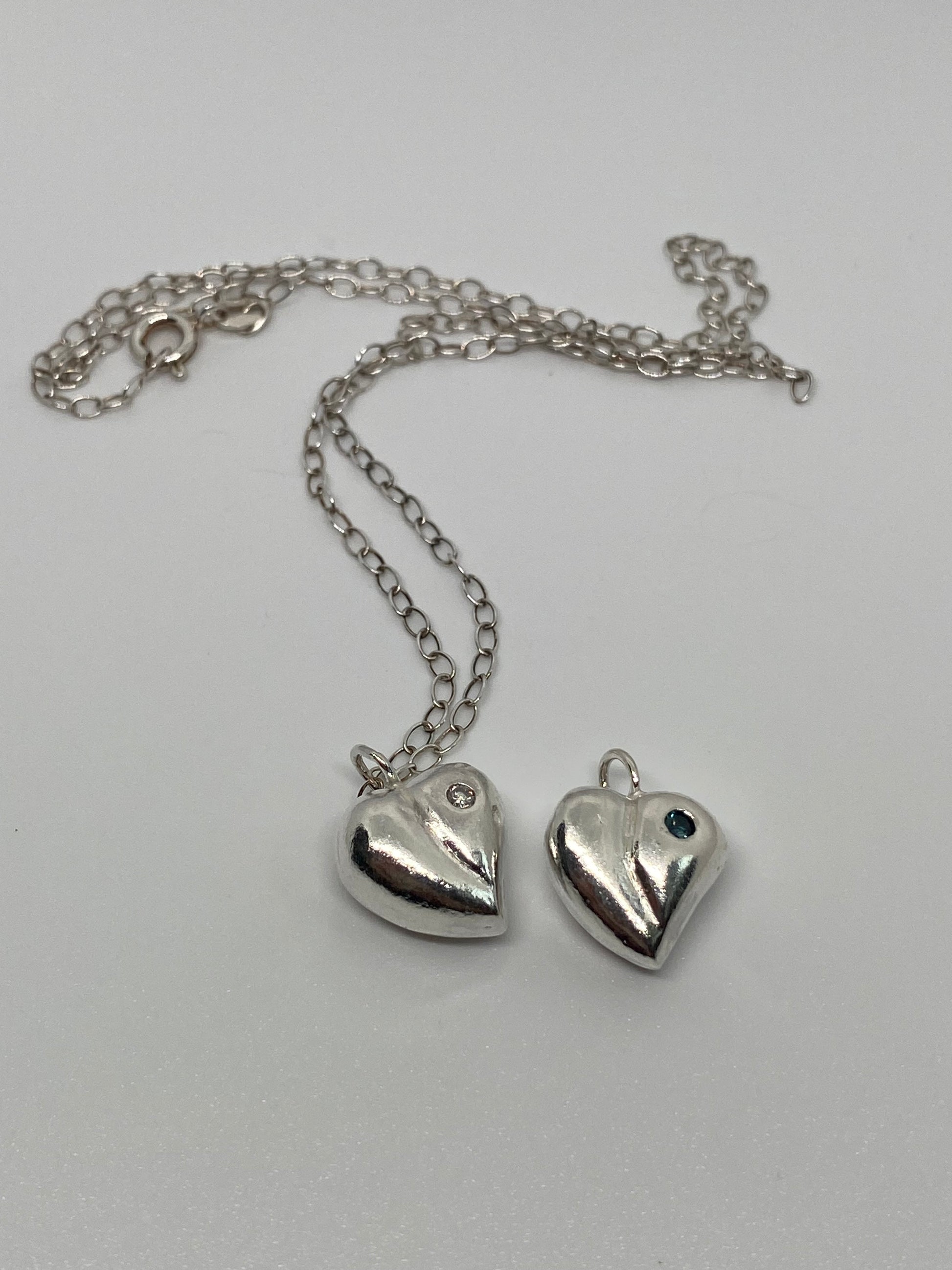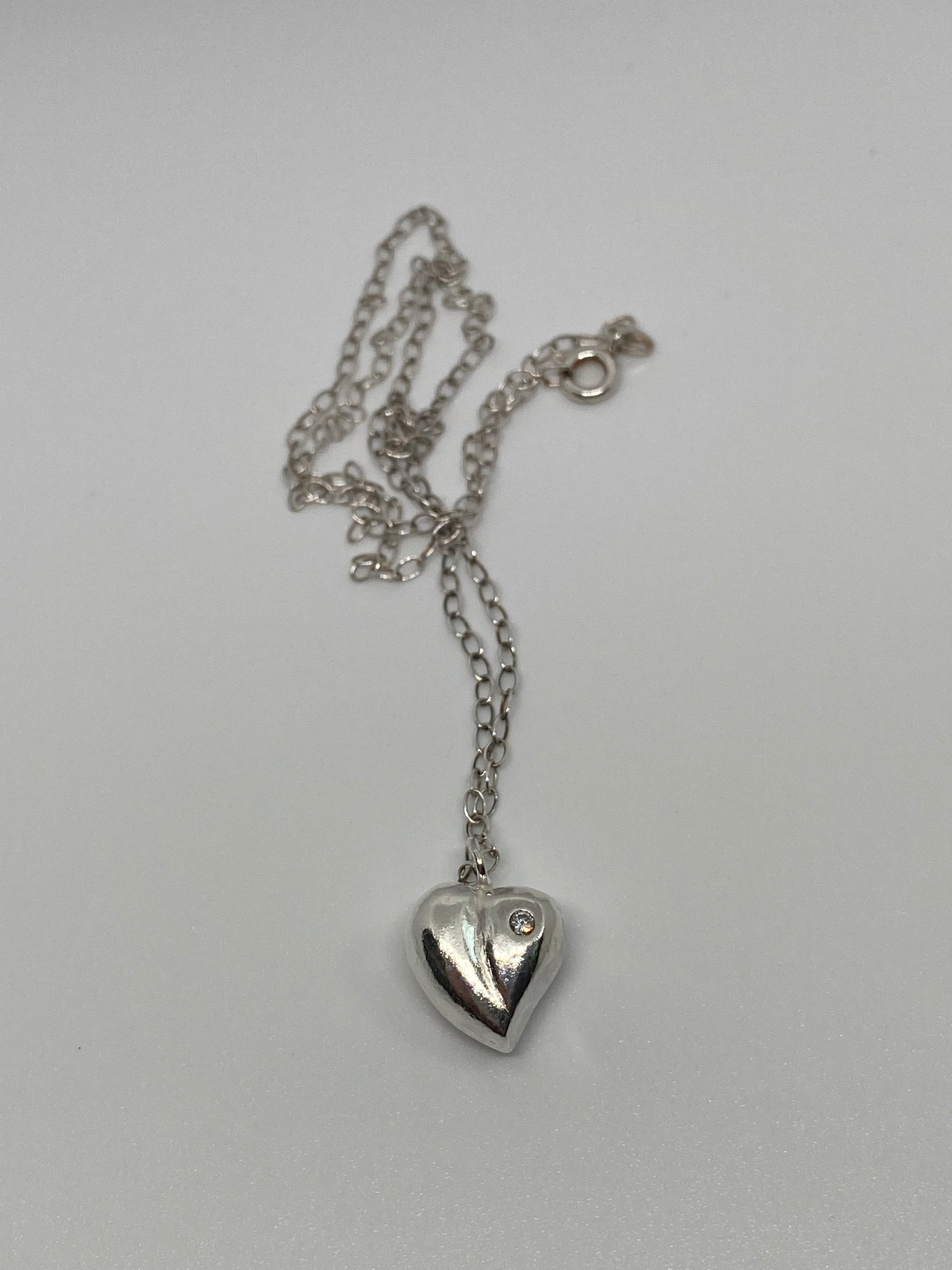 Massivt sølvhjerte fattet med 0,05 wsi diamant