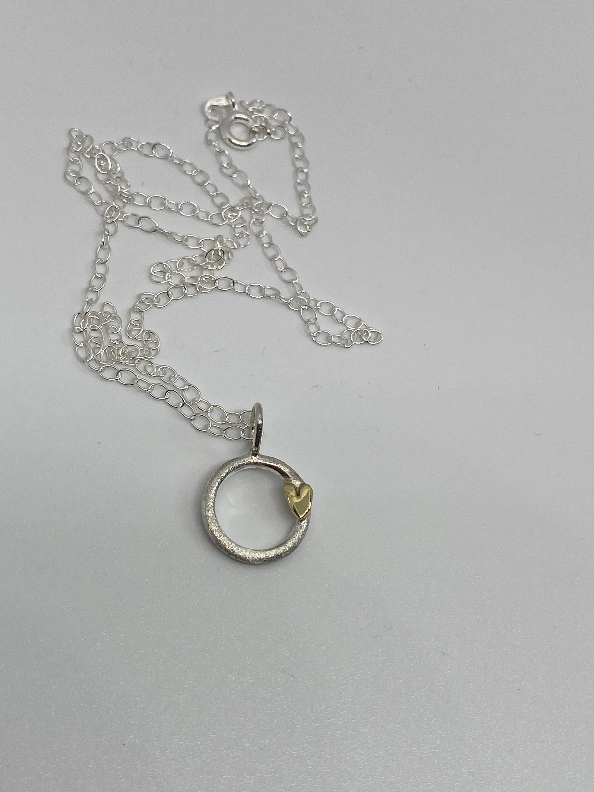 Klassisk sirkel i 925s med et hjerte i ekte gull i midten
