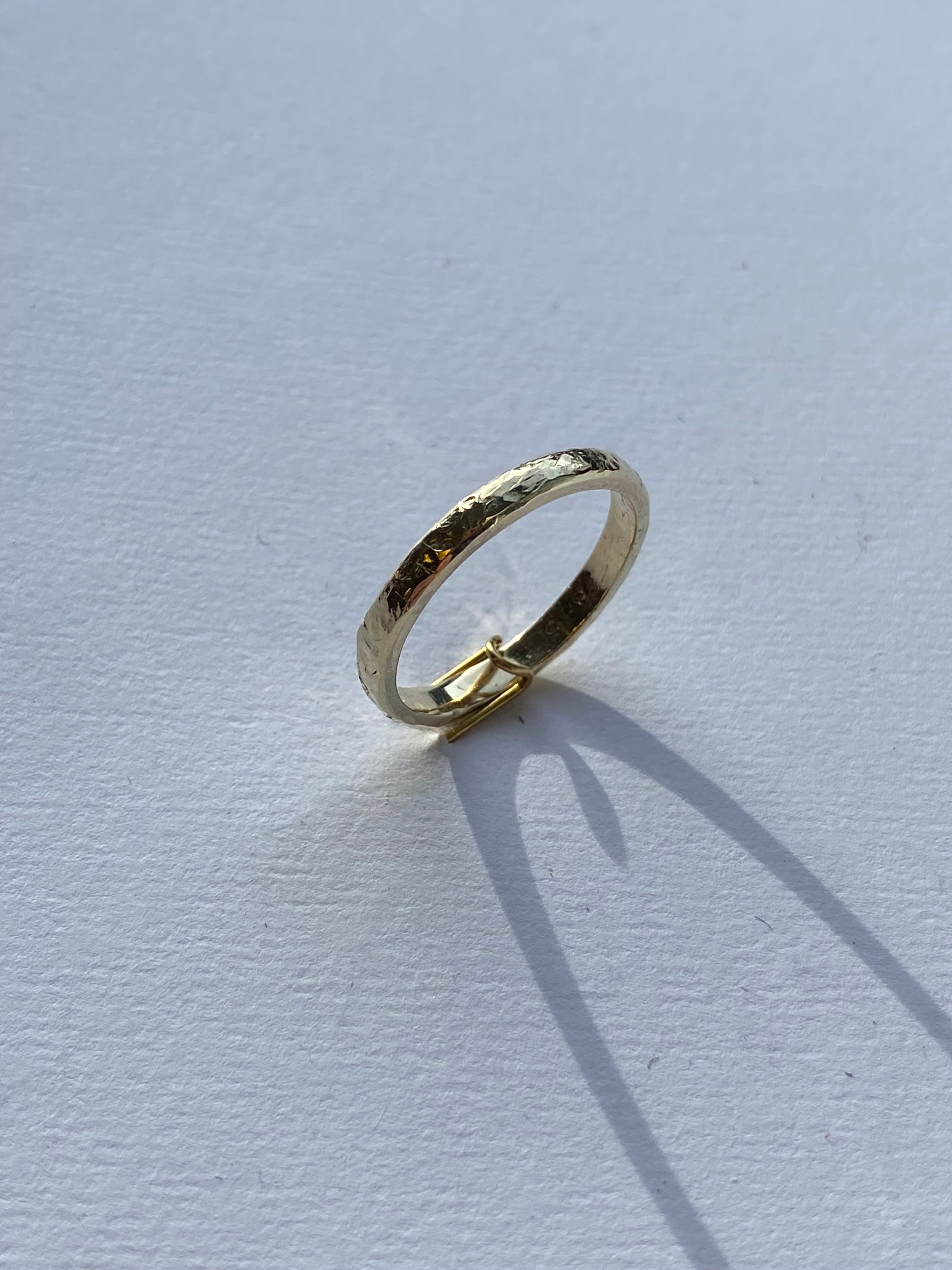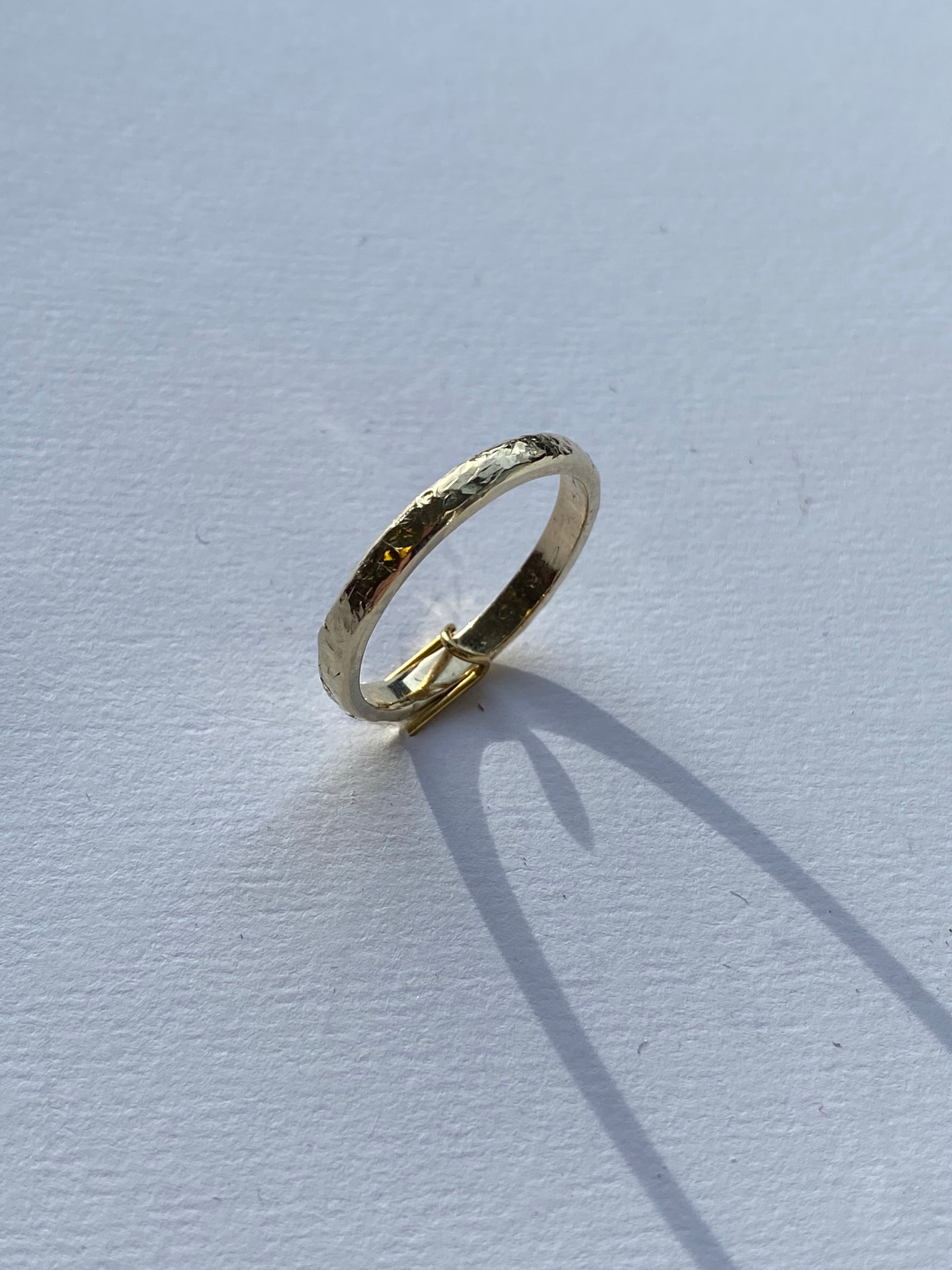 Forlovelse/giftering i hamret overflate. Røff og elegant ring i 585 gult gull.